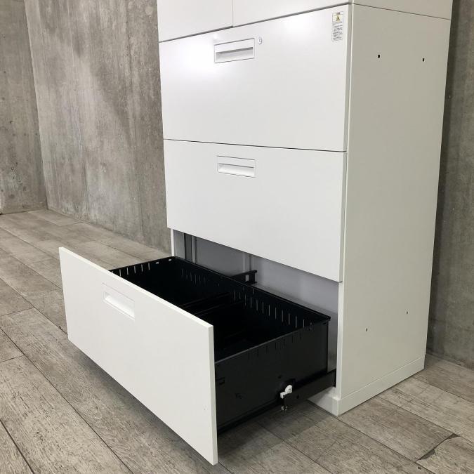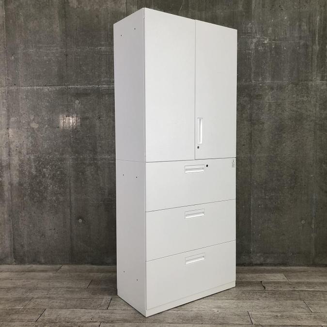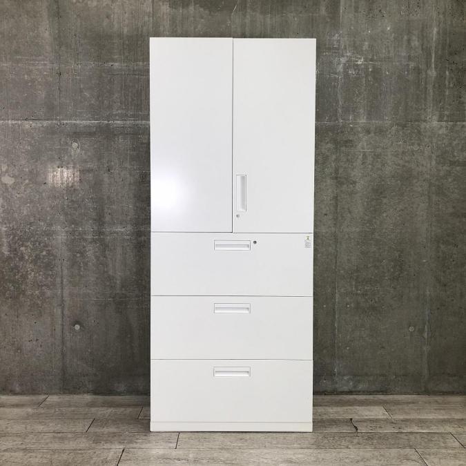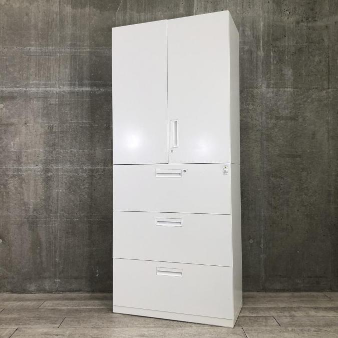 【収納量抜群の書庫セット!観音開き+引き出しタイプの人気の組み合わせ!】■コクヨ(KOKUYO)製 エディアシリーズ(EDIA) 両開き+3段ラテラル 書庫セット ハイキャビネット ■シリンダー錠 ■ホワイト