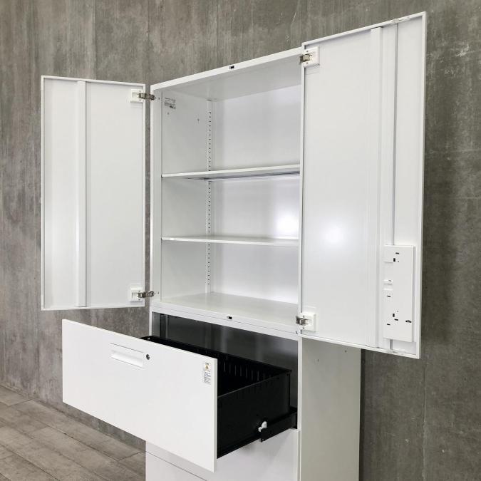 【収納量抜群の書庫セット!観音開き+引き出しタイプの人気の組み合わせ!】■コクヨ(KOKUYO)製 エディアシリーズ(EDIA) 両開き+3段ラテラル 書庫セット ハイキャビネット ■ホワイト ■シリンダー錠