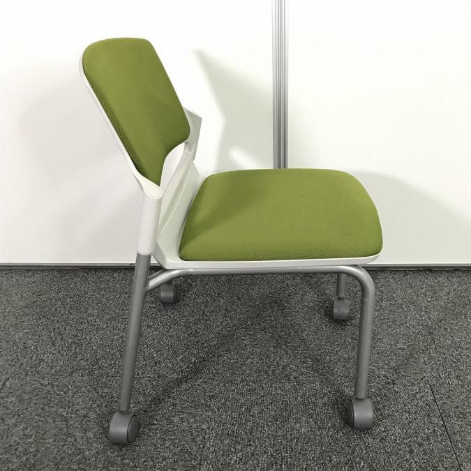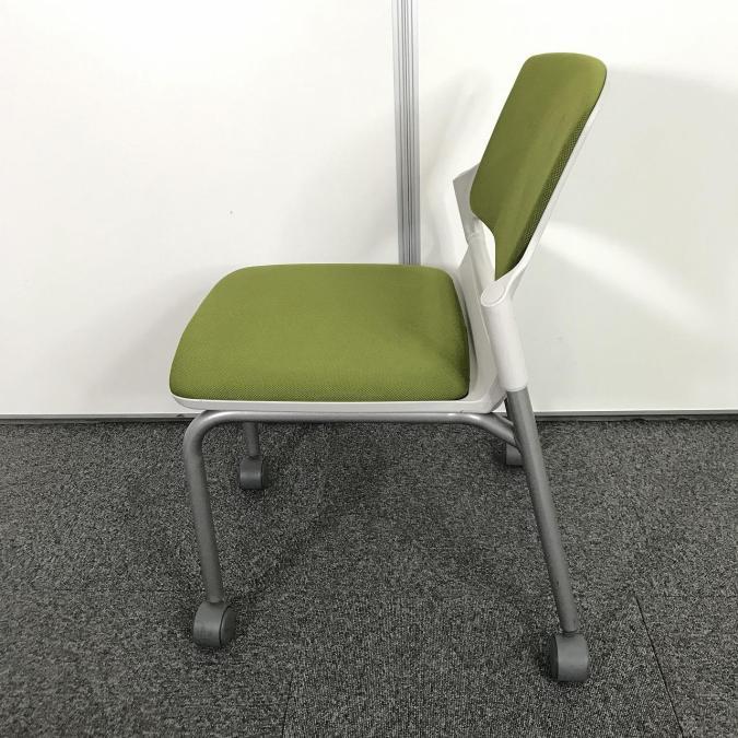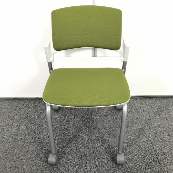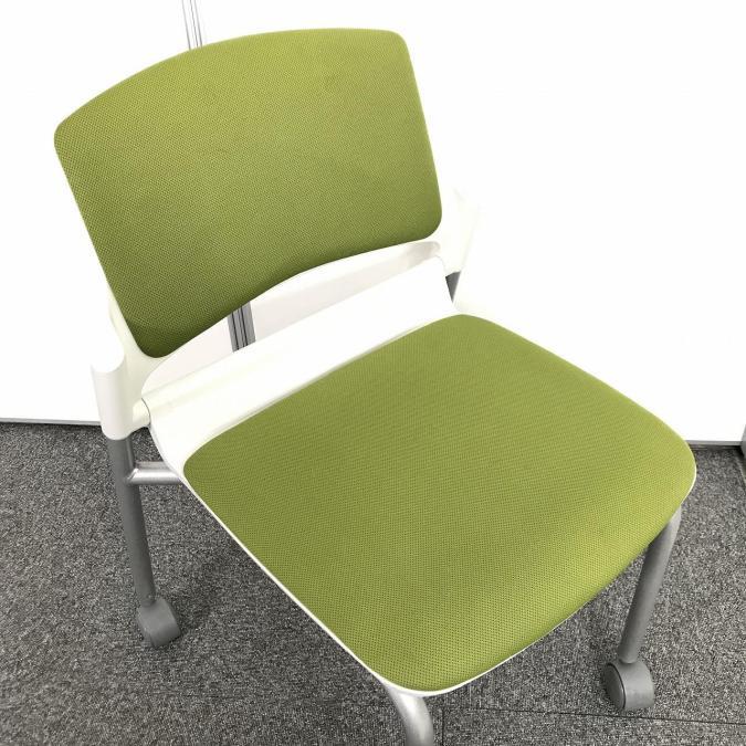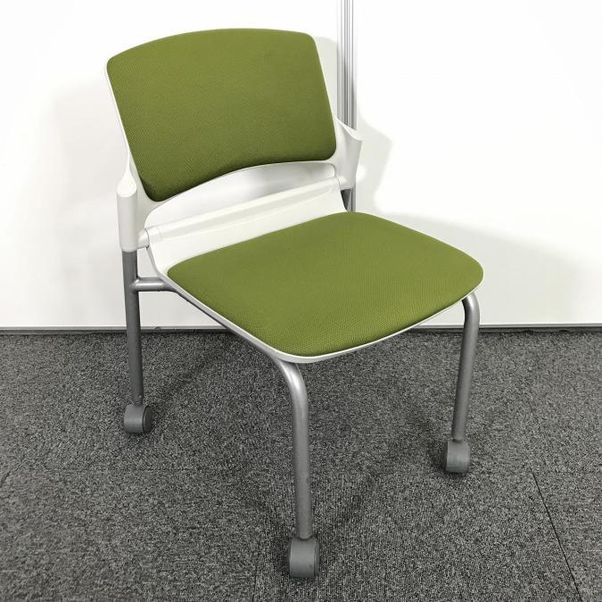 在庫入れ替えセール!【まとめて揃います!】【会議室・休憩スペースなどに】【木目カラーとの相性もバッチリ】■内田洋行製(UCHIDA) MF-180シリーズ スタッキングチェア ミーティングチェア リーフグリーン ■キャスターつき- 池袋店