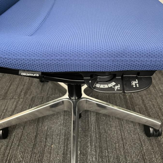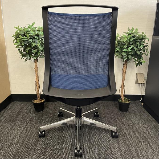 【背面がメッシュの肘無ローバックチェア】オカムラ モード メッシュ ブルー ロット 九州 福岡 オフィスチェア 事務チェア- 福岡南店