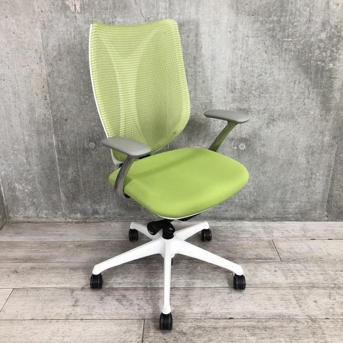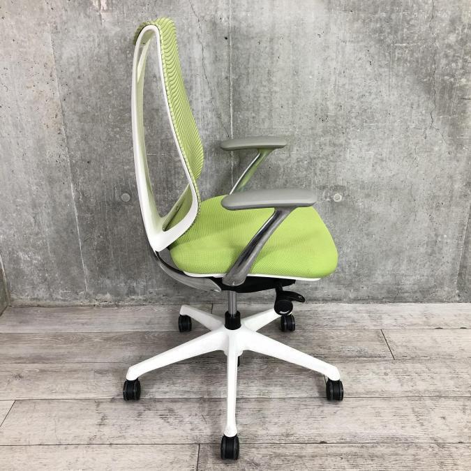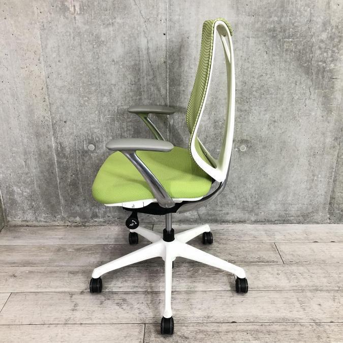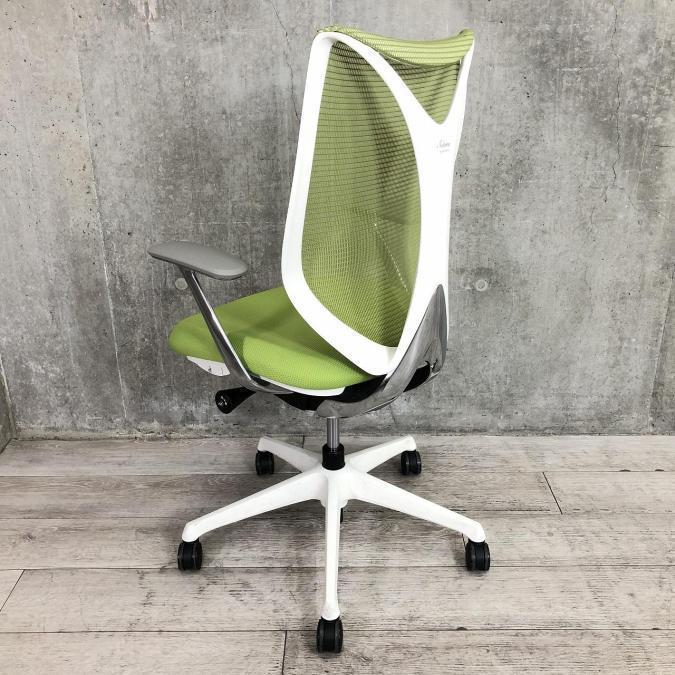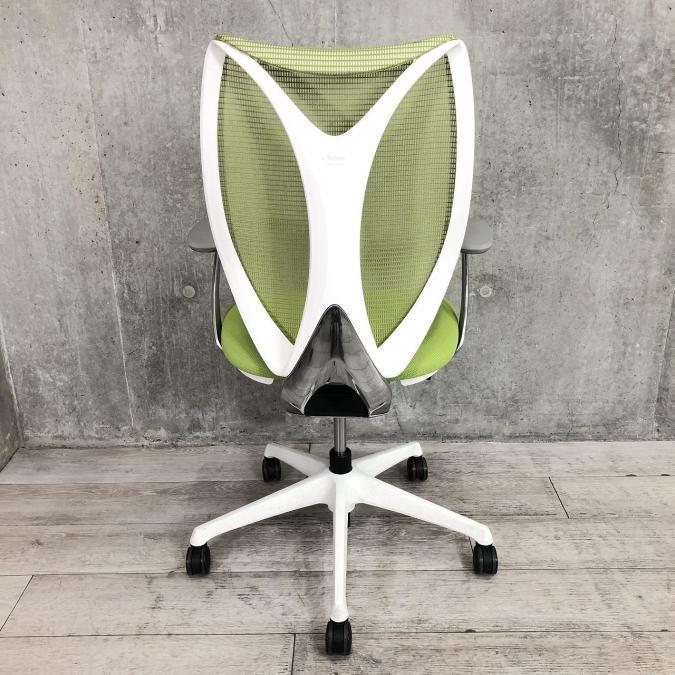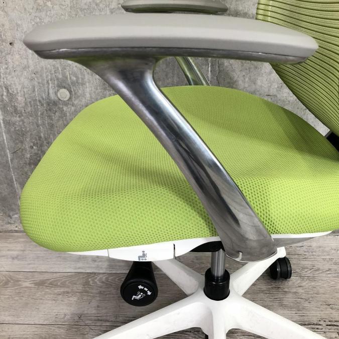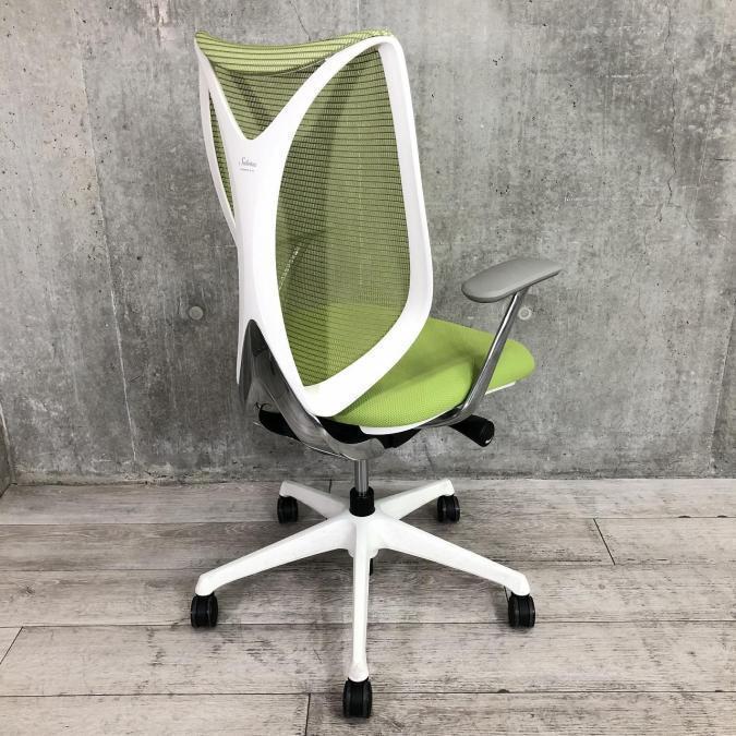 3脚入荷!【前傾チルト付き】気持ちを爽やかにリフレッシュ!木目デスクとも相性バッチリなライムグリーンの最高級メッシュチェアが入荷です!■オカムラ(okamura)製 Sabrina(サブリナ) ハイバック ■固定肘付き ■ライムグリーン×ホワイト【オフィスにもご自宅用にも!】- 東大阪店