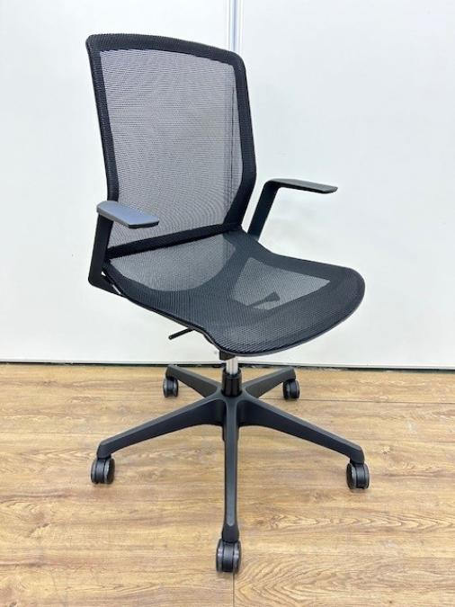 【2023年製】美品!! 会議用や応接用にピッタリ!! 軽くて動かしやすい/メッシュ 肘付 ブラック OAチェア- 大阪梅田本店
