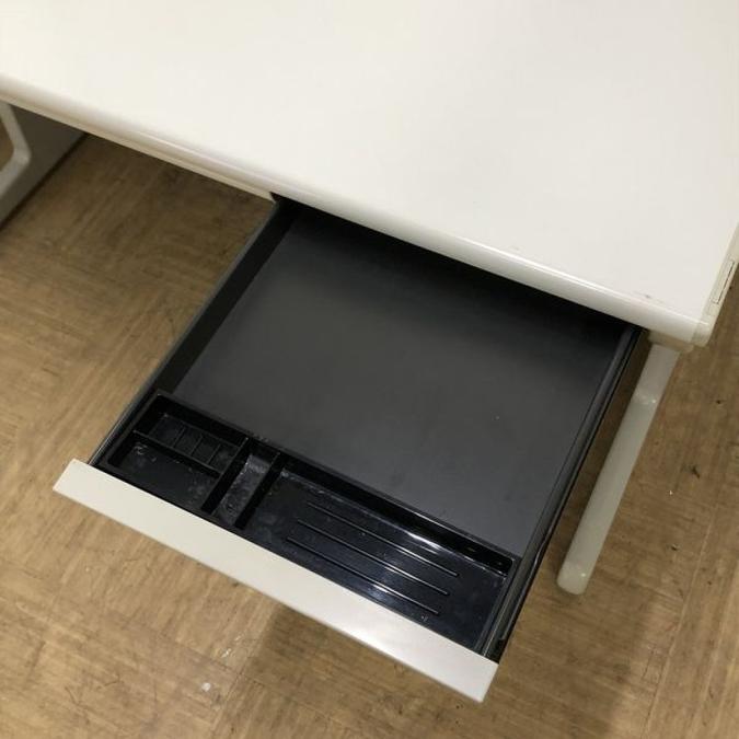 - 袖机のワゴンは、最下段がロング引出しになっており、従来より収納力120%アップ。