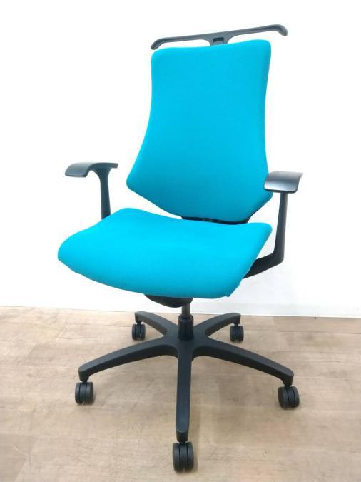 入替セール品につきお値下げ!【厚めの座面が優しく包み込む!機能充実のハイパフォーマンスチェア!】■イトーキ(ITOKI)製 エフクロスチェア 肘付 ハイバック ■固定肘 ■ブルー×ブラックシェル