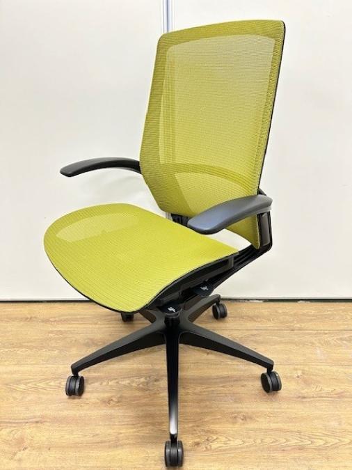 【美しいデザインに快適な座り心地!】■オカムラ フィノラチェア 肘付 グリーン ■次世代のタスクシーティング- 在庫数