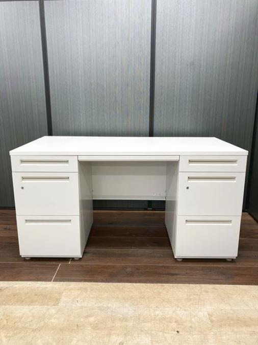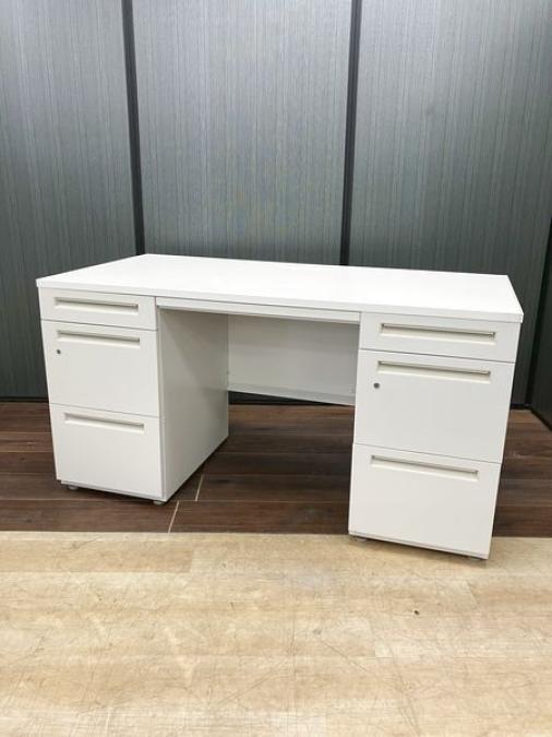 国内メーカー製 W1400mm両袖机 本体ホワイト ※高さ700mm