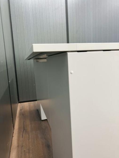 - 机の角がシャープなので、隣り合うデスクがフラットにつながります。すっきりとしたデザインです。