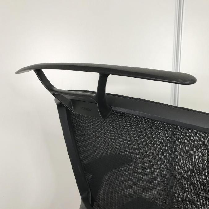 もちろん見た目だけでなく、オフィスでの使いやすさも考えられています。例えば、普通のチェアでは離着席時に背もたれを持つので、背もたれの上部が少しずつ汚れてきます。しかし、エルフィでは、背もたれのフレームに取っ手がついており、それを押し引きできるので、クッションやメッシュを汚すことなく綺麗な状態で長くお使いいただくことができます!