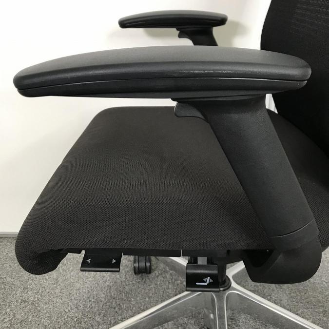 また、個人的にオススメなのは『フルアジャスタブル肘』というアーム部分が斜め前に伸びていくタイプの肘置きを搭載したモデルです。高さを上げれば上げるほどパッドが前方に迫り出していくので、デスクワークの際にちょうど肘を置きたい場所に肘置きがきます。これがとても快適なので、ぜひ一度お試しいただきたいです!*エルフィチェアの肘パーツはフルアジャスタブル肘の他に、固定肘、アジャスタブル肘などがあります。