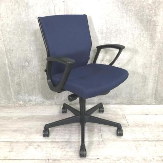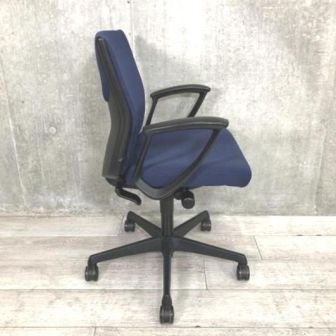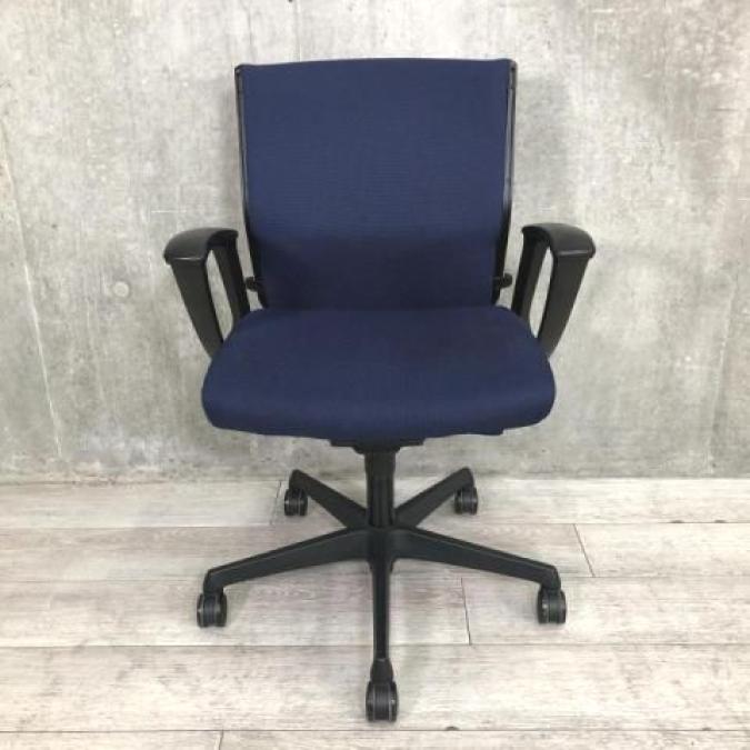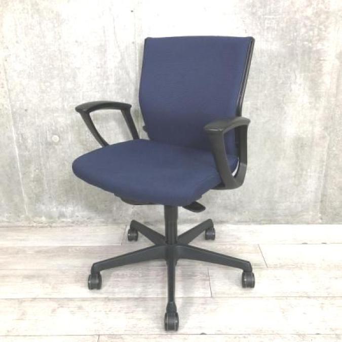 【オフィスの定番チェア!起業や入替に!】■okamura(オカムラ)製 ESCUDO/エスクードチェア 肘付ハイバック ■ダークブルー ■固定肘 ■ランバー付 【SN】