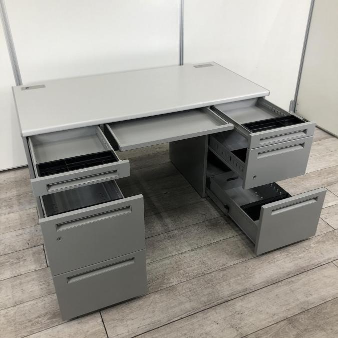安心の国内メーカー製!ウチダの定番スタンダードデスク!ワークスペース広々 収納も充実の人気両袖机! ■内田洋行/FEED-N(フィードエヌ)/グレイ 横幅1400㎜- 立川・八王子店