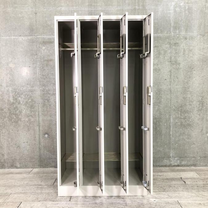 【衣類や個人の荷物の管理に!増員や移転に併せて!】■コクヨ(KOKUYO)製 LKシリーズ 4人用更衣ロッカー ■シリンダー錠 ■ニューグレー オフィスバスターズ東大阪店 鍵付き