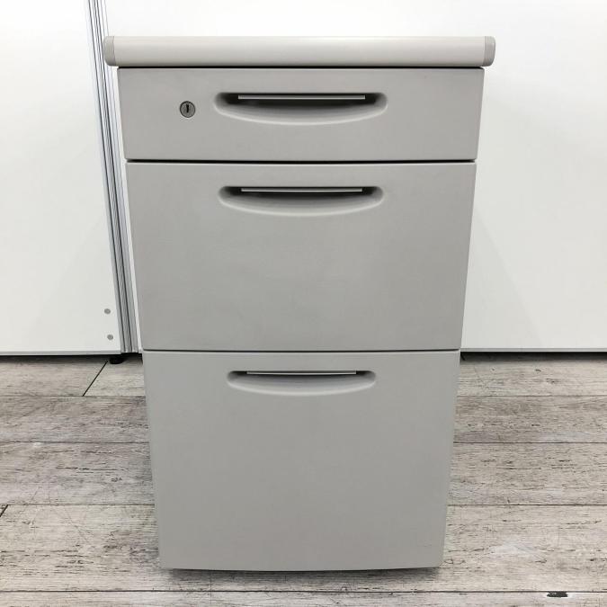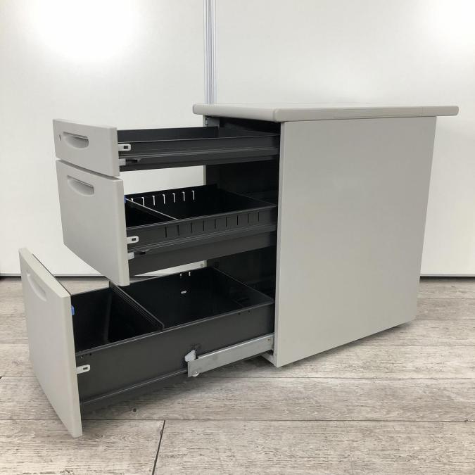 【定価約10万円】【収納と作業スペースを同時に確保できる3段脇机!】■オカムラ(okamura) SD-Vシリーズ 脇机3段 ■W400×D700×H700㎜ ■色:ニューグレー ■シリンダー錠