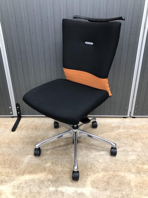 【在庫入替セール】オカムラ フィーゴ 肘無しミドルバック シームレスタイプ ハンガー付き ブラック×オレンジ- 名古屋千種店