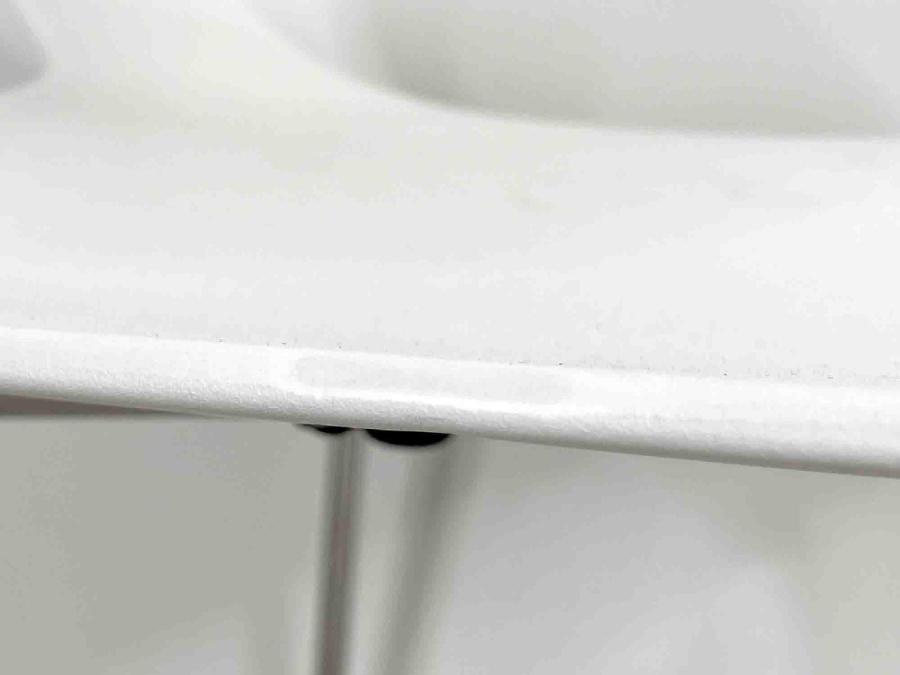 - かなり強い濃い黄ばみ・変色が商品全体にある。(例、座面・背もたれ、脚部等にある。)