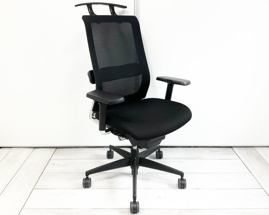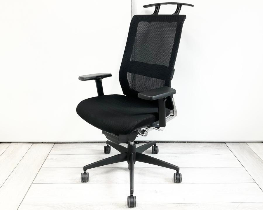 【スマートなデザインの上質チェア!】■コクヨ製 エアフォート 肘付ハイバックチェア ■ブラック ランバーサポート付き 可動肘