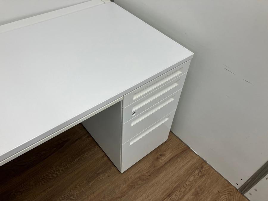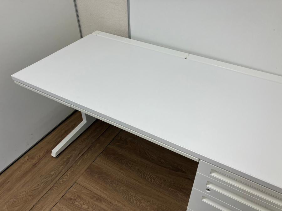 【セットでお買い得!横幅1400の平机と3段ワゴン!疑似片袖机】 オカムラ アドバンス ホワイト 引き出し付き ネオホワイト【収納が欲しいかたにはオススメ】