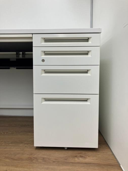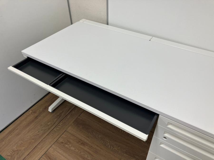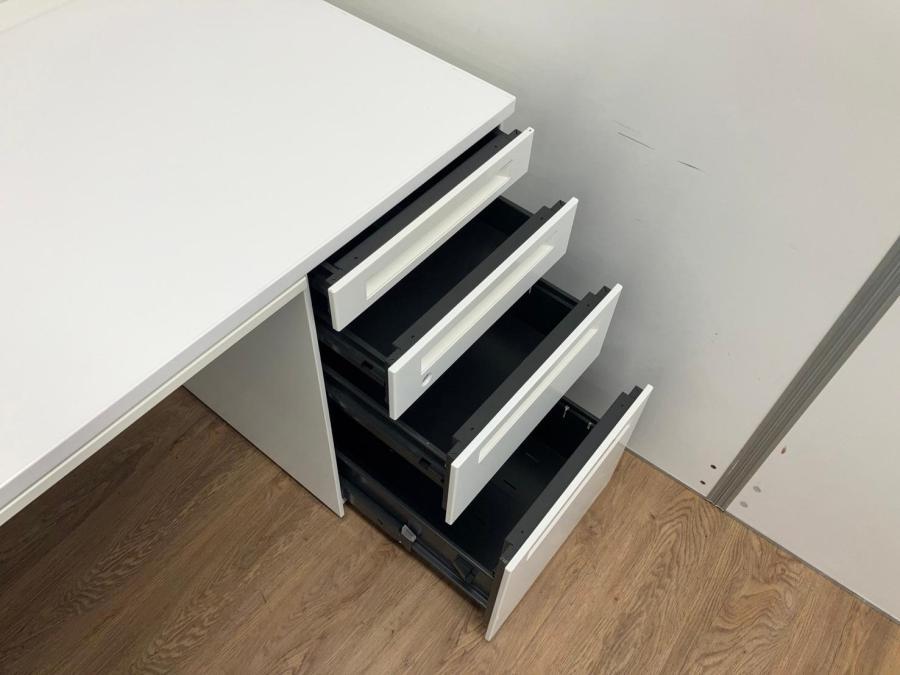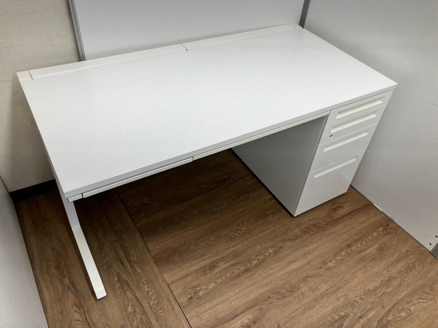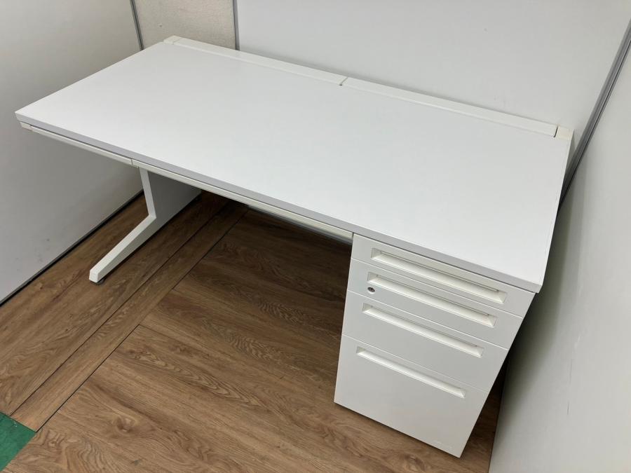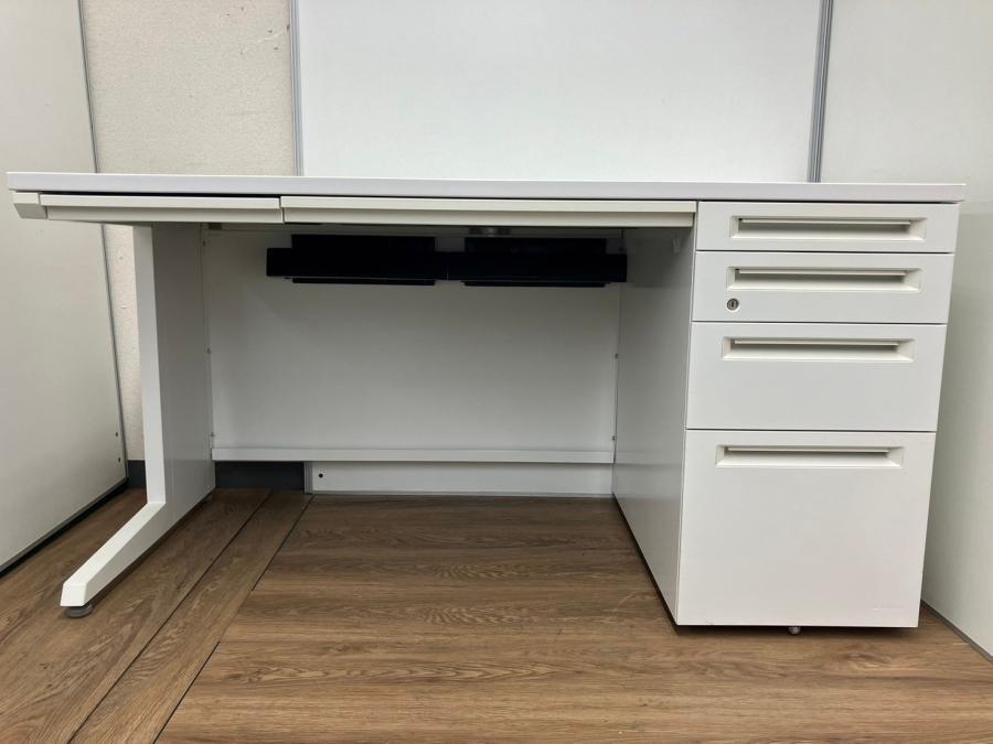 【珍しい4段引出しタイプが入荷!】W1400㎜片袖デスク●オカムラ●アドバンス●ホワイト●- なんば日本橋店
