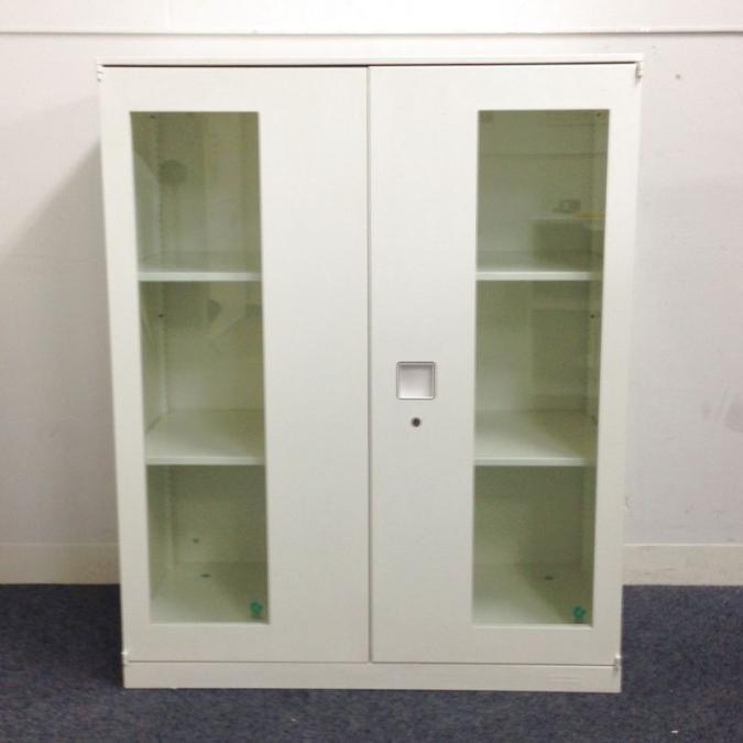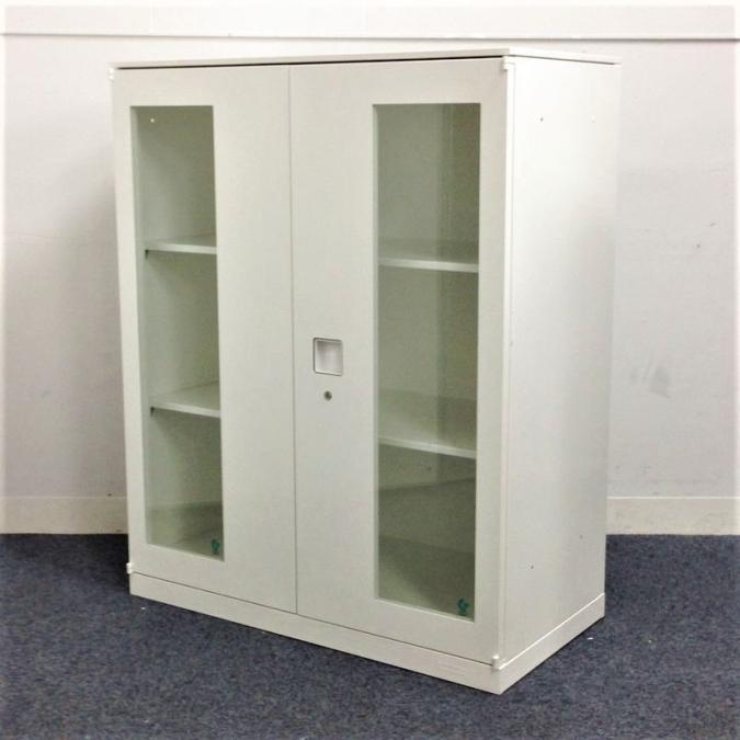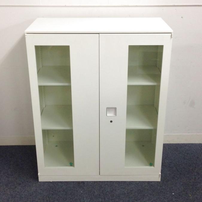 強化ガラスで耐久性あり 珍しいガラス両開き扉|オカムラ製のスタンダードタイプ レクトライン- 茨城南店