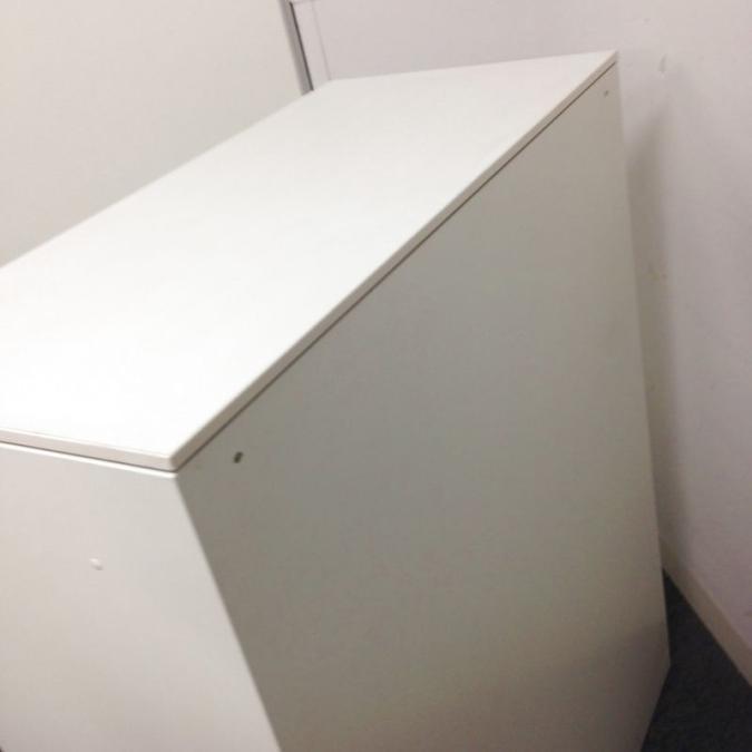 【オフィスの書類をスッキリ整理!取っ手がどの方向からでも開くマルチハンドル!】■オカムラ(okamura)製 レクトラインシリーズ 両開き書庫 ローキャビネット ■本体色:ホワイト ■シリンダー錠 ■ナチュラル天板付き