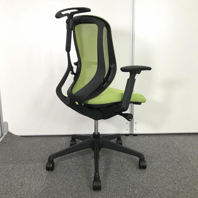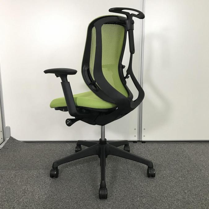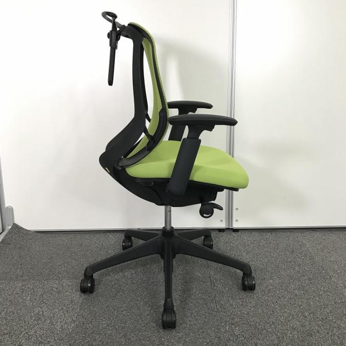 【在庫入替セール】【三次元曲面が身体にフィット!】■オカムラ製 シルフィーチェア ローバック メッシュ アジャストアーム ハンガー付 ライムグリーン【まるで手を添えて包み込まれるような優しい座り心地!】サーキュラーバリューCO2削減量の算出について