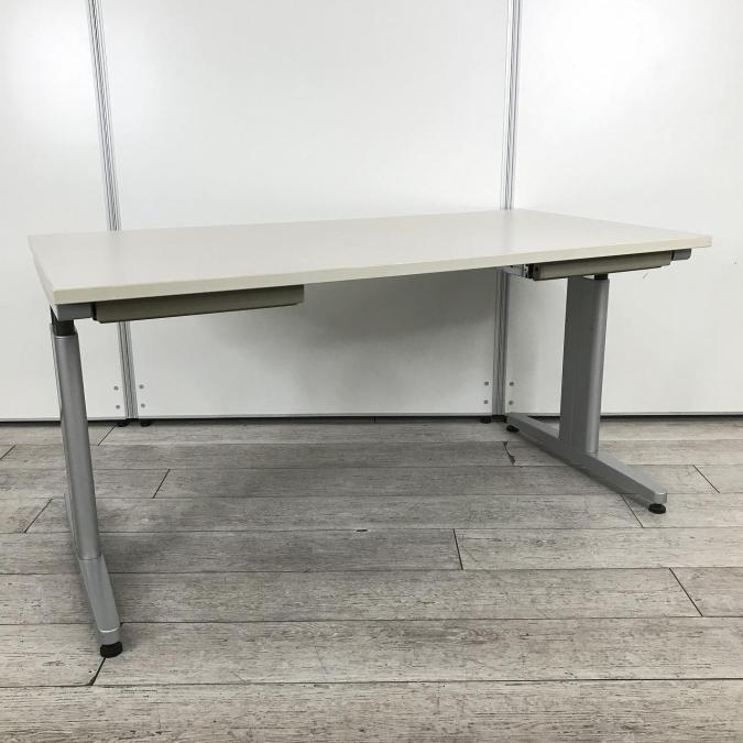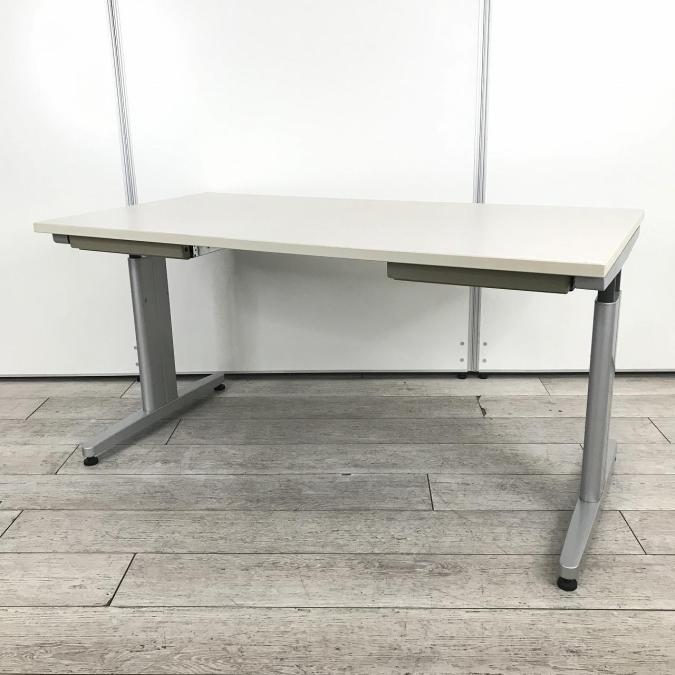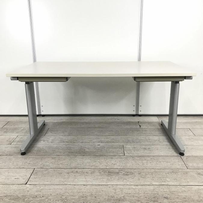 【広々としたワークスペース!】■コクヨ製 アリオスシリーズ ストレートデスク W1400×D740mm T字型シルバー脚 サイド引出し付 ニューグレー ※キズあり商品のためお安く!- 川崎店
