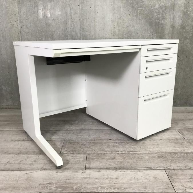 【T11】【商品入替のため、残り6台限り】オカムラ製 アドバンシシリーズ ホワイトカラー 4段収納で整理も完璧! コンパクトで清潔感のあるオフィス W1000片袖机!!