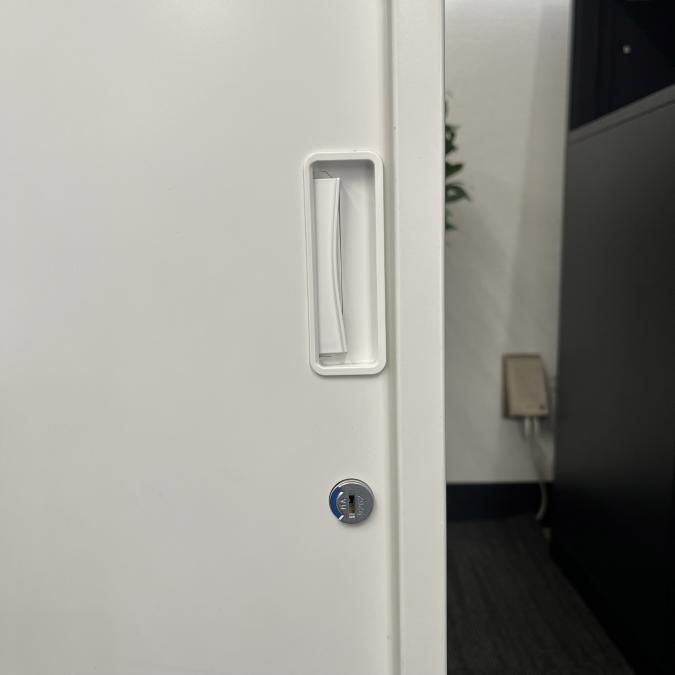【イトーキ製の開閉スペースを確保した人気のキャビネット!】■3枚引き違いキャビネット ■イトーキ ■シンライン ■幅800mm×奥行き450mm×高さ1100mm 鍵付き書庫 オフィスバスターズ東大阪店