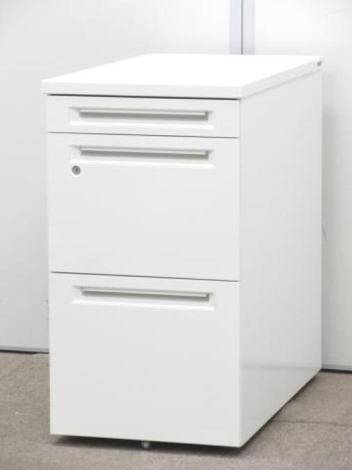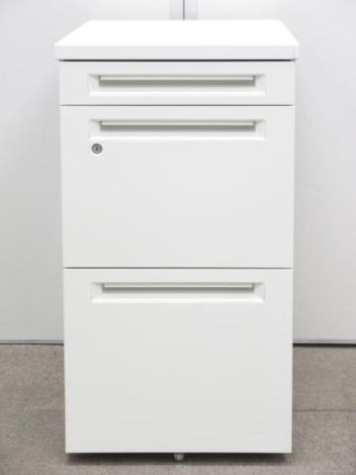 【収納と作業スペースを同時に確保!人気シリーズの脇机!】■オカムラ(okamura)製 アドバンス (ADVANCE) 3段脇机 高さ 720mm ■シリンダー錠 ■ホワイト 【弊社使用欄:A01041635】