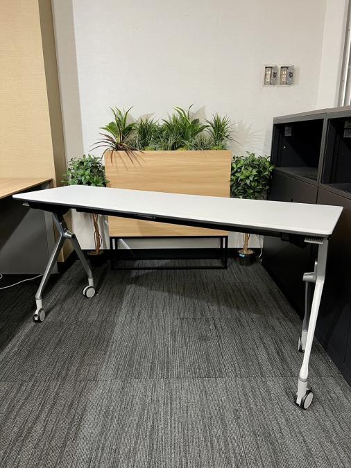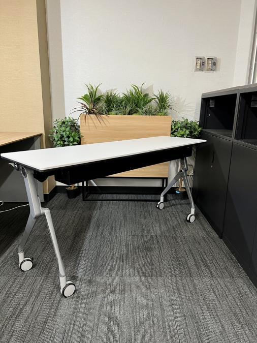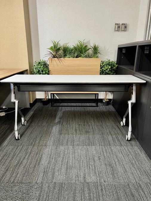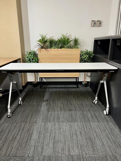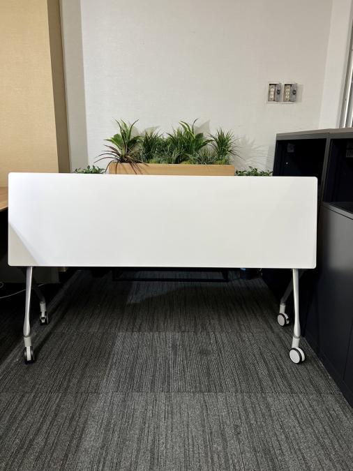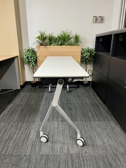 【南】2人掛け可能なキャスター付・天板跳ね上げ型ミーティングテーブル!ホワイト 九州 福岡 中古オフィス家具 テーブル 屋外作業 カウンター在庫がある店舗一覧
