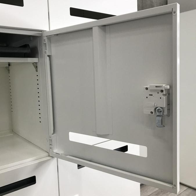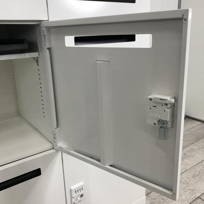 鍵の持ち運び要らずで便利に使える!モバイルワーカーにオススメの逸品!フリーアドレスデスクとも相性抜群! ■オカムラ/ピクスライン/ホワイト 8人用メールロッカー ダイヤル錠タイプ 配線タップ有