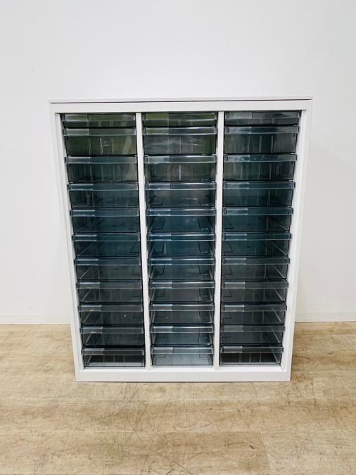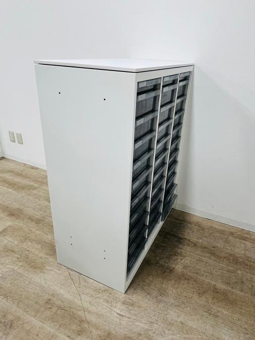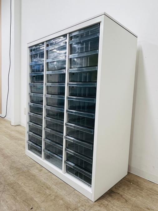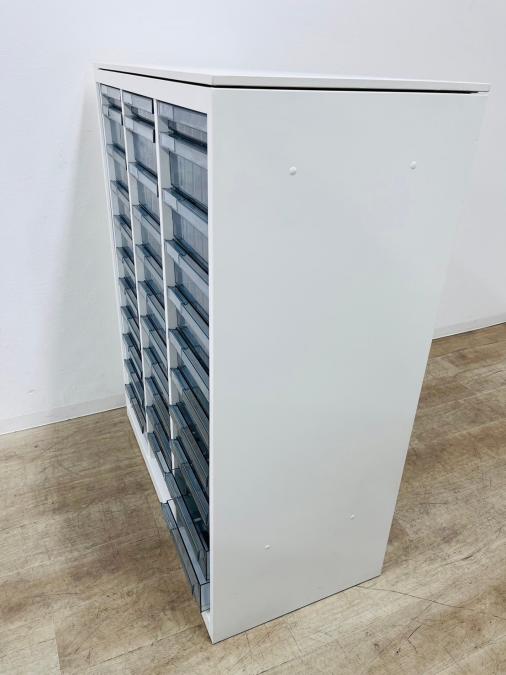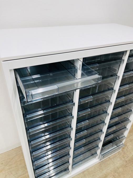 ★オカムラ製 レクトライン ホワイト 3列x16段 浅型x11段/深型x5段混在 W900xD450xH1150サイズ 天板付 クリスタルトレーキャビネット クリスタルトレイ!!