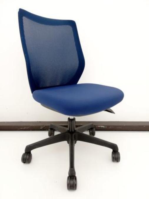 入替セール品につきお値下げ!【コンパクトなサイズ感!腰への負担を減らすS字形状!】■オカムラ(okamura)製 CG-Mチェア 肘無し ローバックチェア ■背面メッシュ ■ミディアムブルー