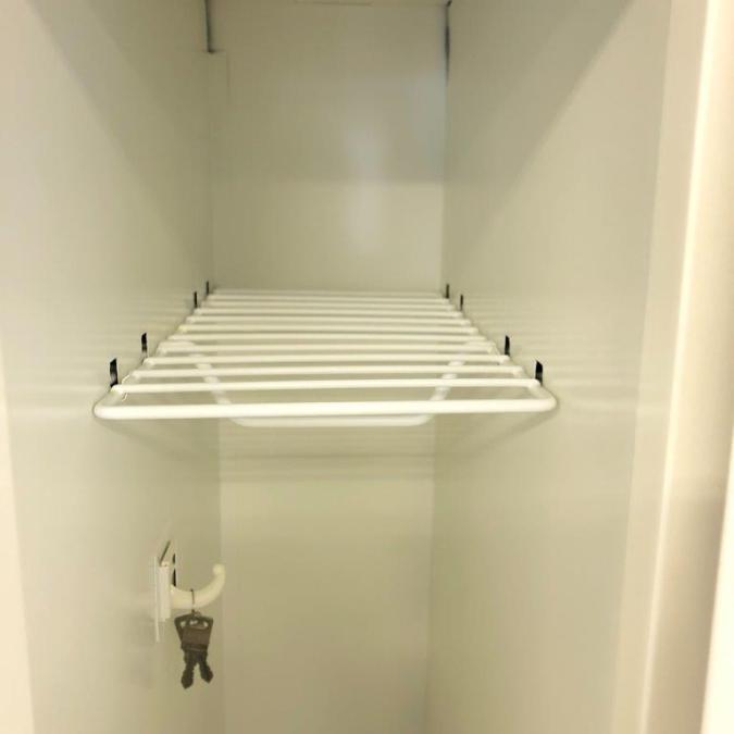 - 完備鏡、ネクタイ掛け、傘立て、網棚、フック等が全て完備されている。