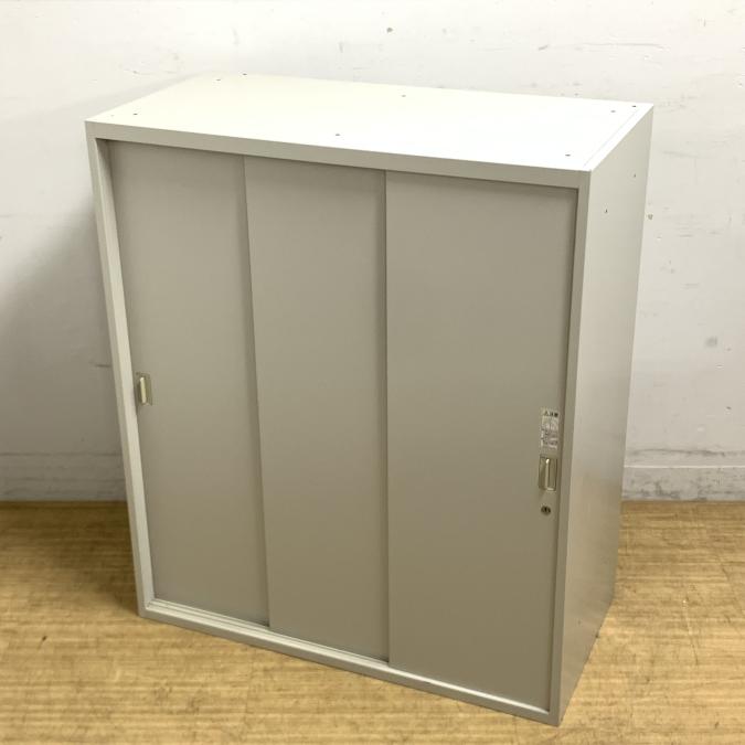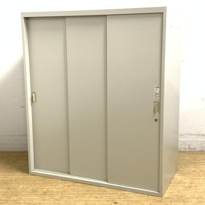 【お問い合わせの多い引違い書庫が入荷!スライド引き戸だから開閉スペースに困りません!】■オカムラ(okamura)製 レクトラインシリーズ 3枚引き戸タイプ 引違い書庫 ローキャビネット ■シリンダー錠 ■ニューグレー【2508】弊社使用欄【A01029264】