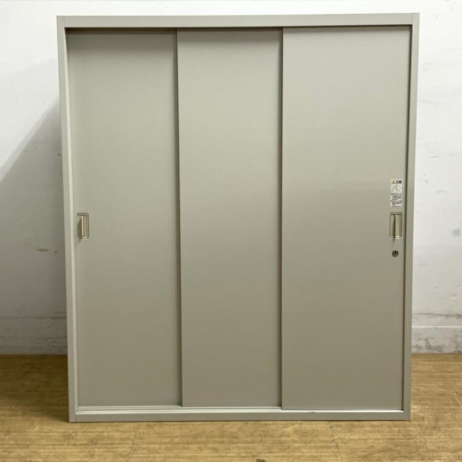 【お問い合わせの多い引違い書庫が入荷!スライド引き戸だから開閉スペースに困りません!】■オカムラ(okamura)製 レクトラインシリーズ 3枚引き戸タイプ 引違い書庫 ■シリンダー錠 ■ニューグレー