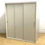 【大きく開いて真ん中の書類も出し入れしやすい!】■オカムラ レクラインシリーズ 3枚引戸書庫 ライトスモーク ■スライド扉でスペースを有効活用!【Okamura Rectline】
