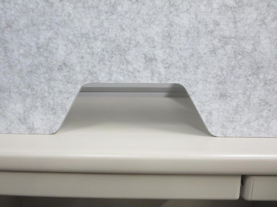 パネルが視線より高く、正面が折り返されていることで、対面への飛沫の拡散を予防します。