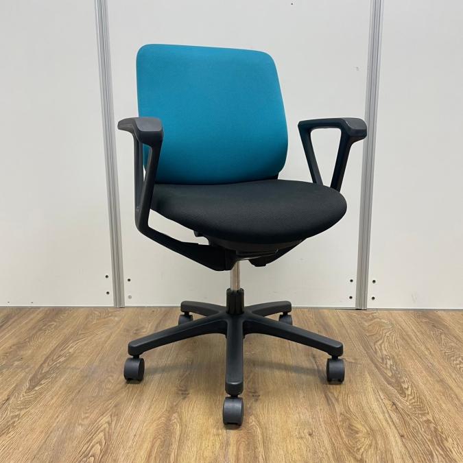 イトーキ製 トルテシリーズ ストロングブルーxブラックのツートンカラー ループ肘※固定肘 肘付きローバックチェア!!サーキュラーバリューCO2削減量の算出について