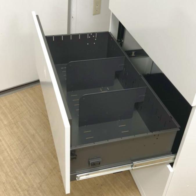 オフィスの必需品!書類をスッキリ整理できる容量の3段キャビネット取っ手がどの方向からでも開くマルチハンドル! ■オカムラ/レクトライン(Rectline)/ホワイト