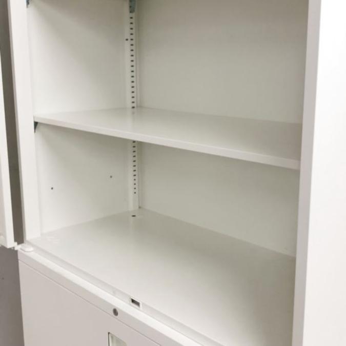 オカムラ レクトライン 3段ラテラル+両開き扉の書庫セット ホワイト シリンダー錠 鍵お付けします 人気商品