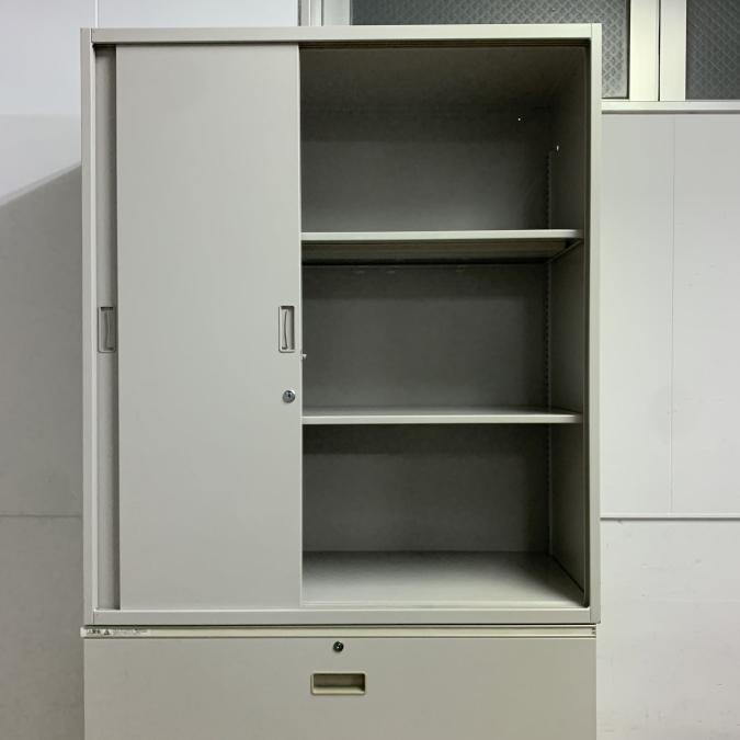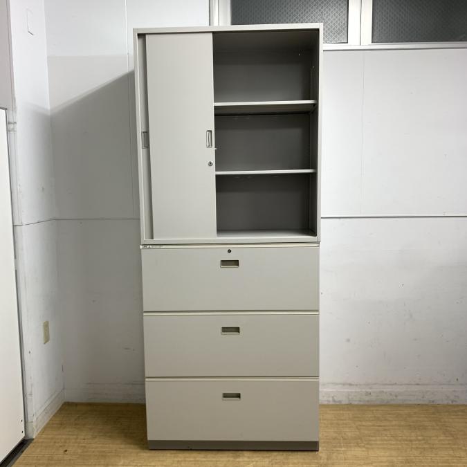 【すぐ取り出したいものはオープンへ保管用などは両開きへ!使い分け可能です!】■イトーキ製 シンラインシリーズ 上下戸書庫セット(上:オープン 下:両開き) ニューグレー 《オフィスバスターズ福岡博多店は、福岡を拠点として、日本全国へ中古オフィス用品・オフィス家具を提供しております》