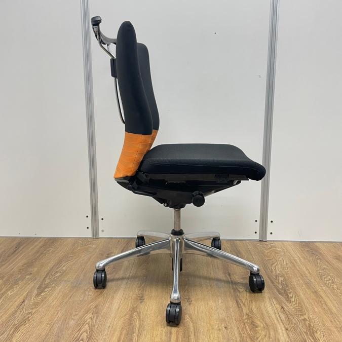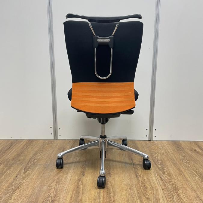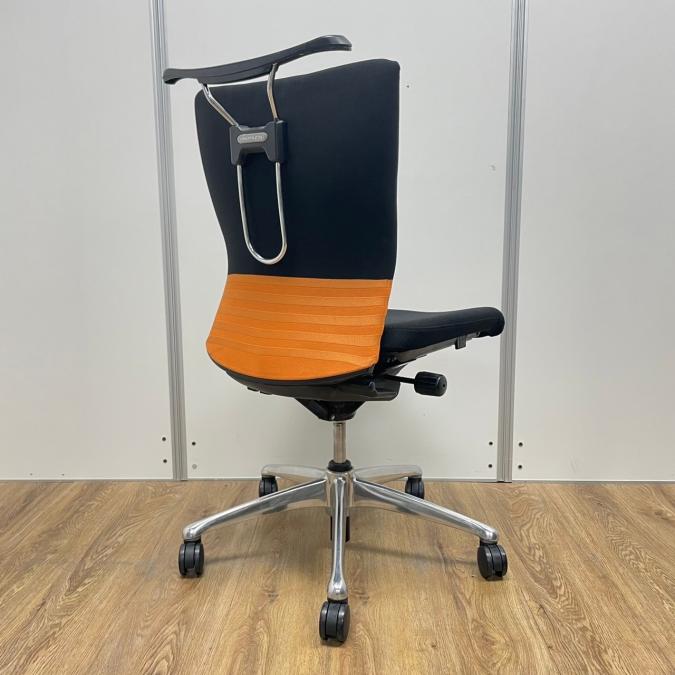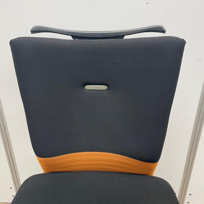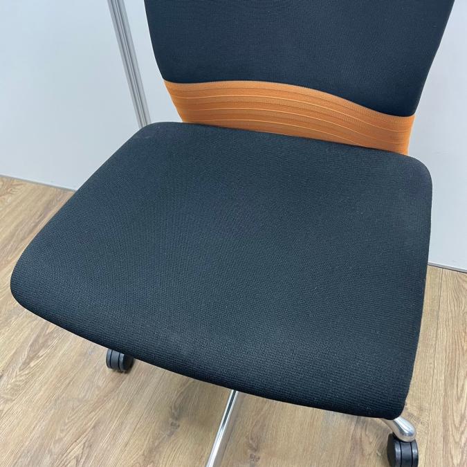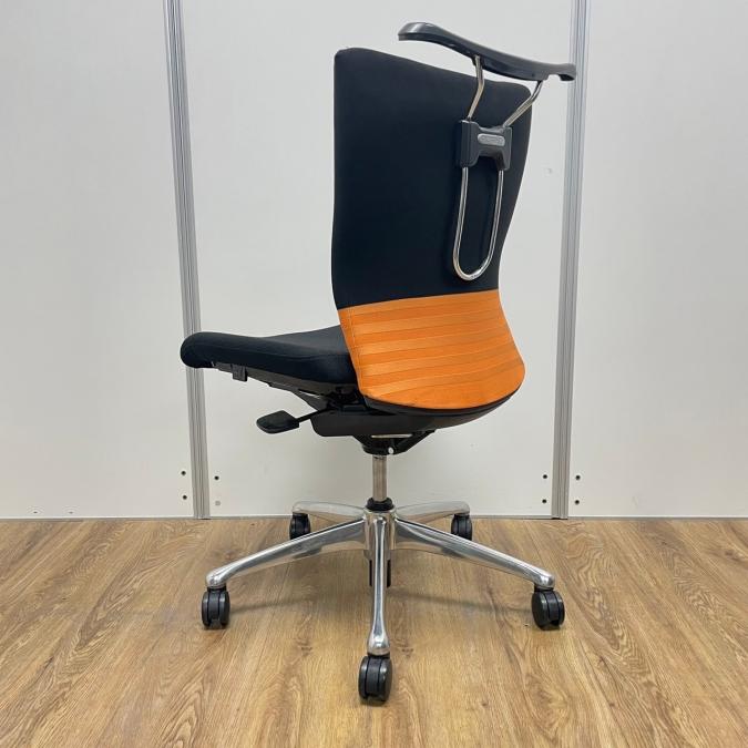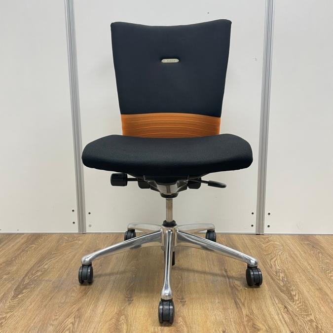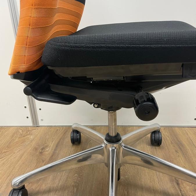 【訳あり品:リクライニングロック不具合】オカムラ製 フィーゴメッシュシリーズ オレンジカラー※シームレス コートハンガー 肘無しミドルバックチェア!!- 京都東寺店