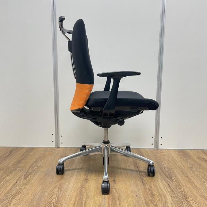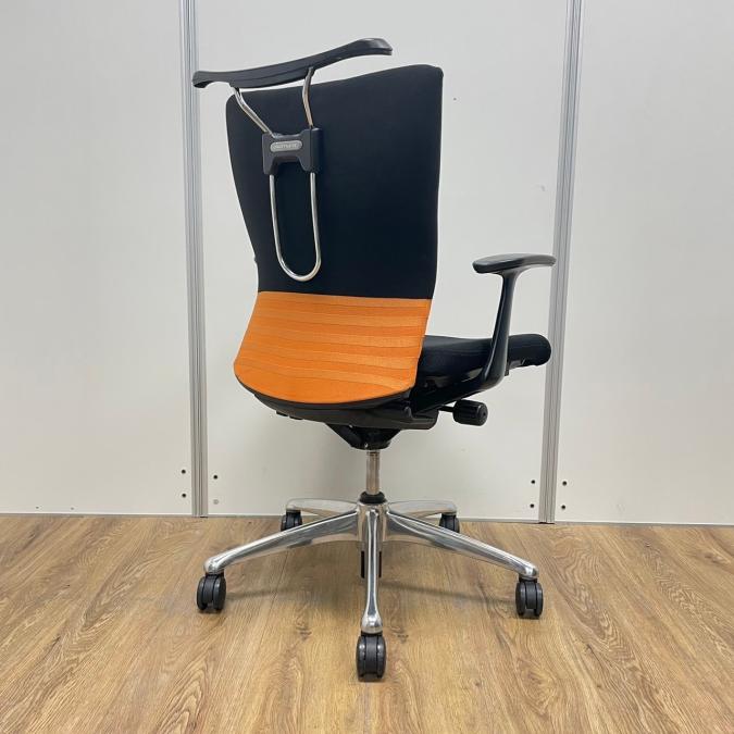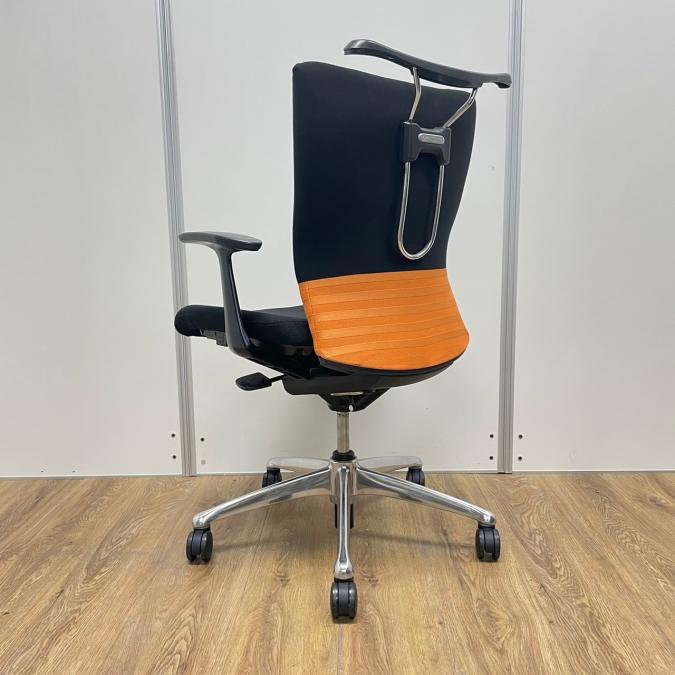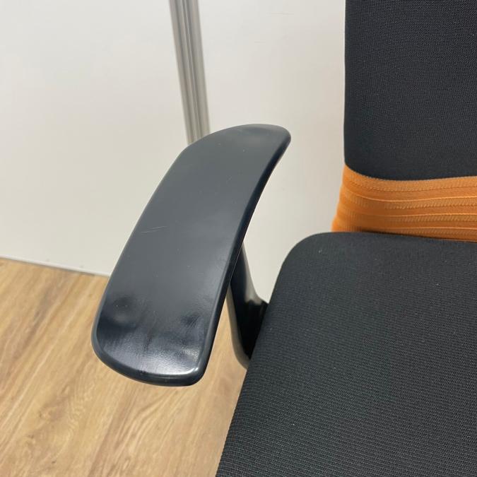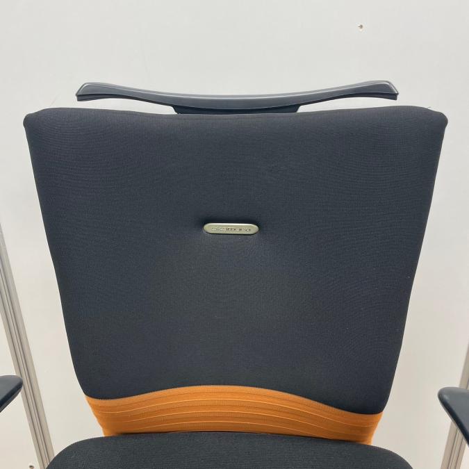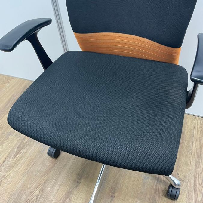 【在庫入替セール】【訳あり品:リクライニングロック不具合】オカムラ製 フィーゴメッシュシリーズ オレンジカラー※シームレス デザインアーム※固定肘 コートハンガー 肘付きミドルバックチェア!!- 京都東寺店