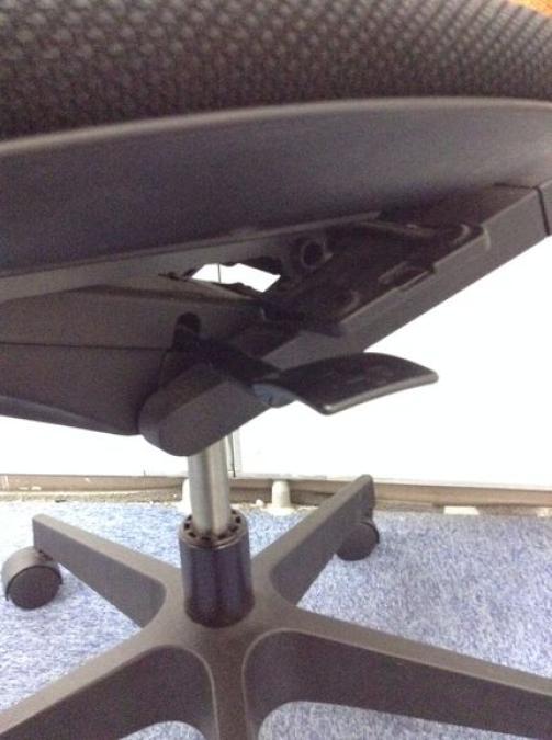 例えば、座面は、イトーキ独自の"ベンディングシート"という機構により、クッション、インターシェル、空洞という三層構造になっています。 この真ん中に挟まっているインナーシェルが、着座時の姿勢に合わせて体重を分散してくれるので、どんな姿勢でも体になじみ、疲労を軽減してくれます。 さらに、座面は前後に4センチほど奥行きを調整でき、前傾姿勢で座りたい、深く腰掛けたい、膝裏を圧迫されたくないなど、個人の好みに合った快適さにカスタマイズが可能となっています。