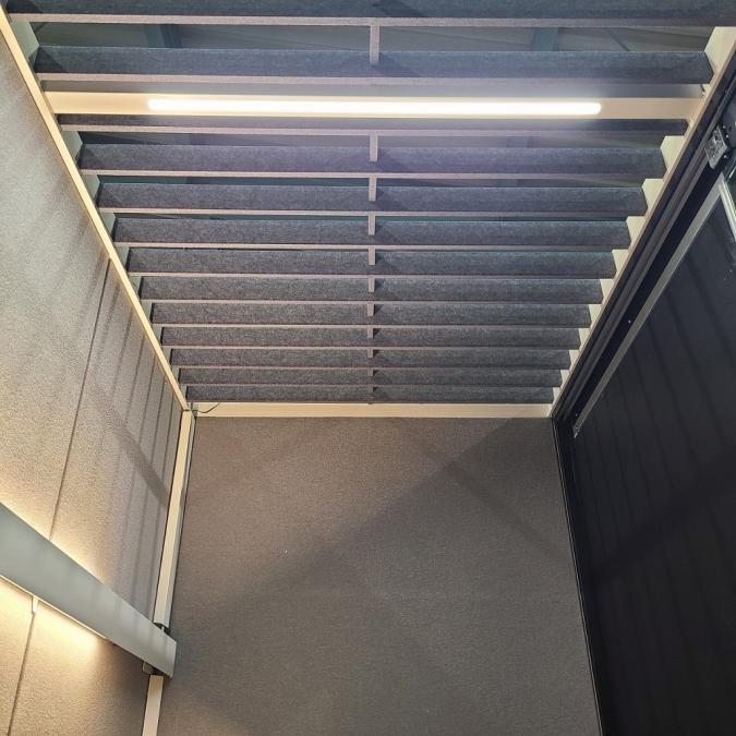 内側には専用のテーブルと照明が取付、専用のワークナップチェアを設置しています。