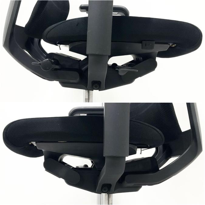 - 座面下のレバー操作により、座面を50mmのストローク(16.7mmピッチ)で好みの位置に調節できます。体格や作業姿勢に合わせたポジション設定が行えます。