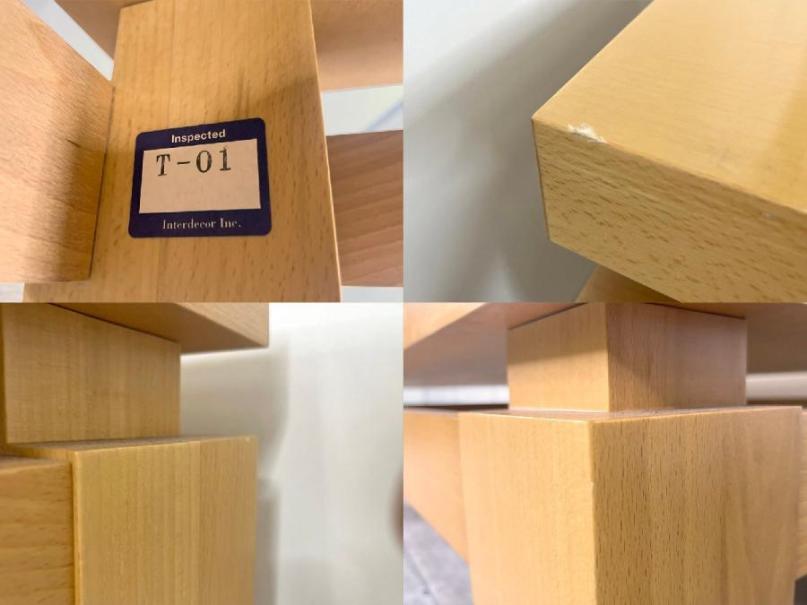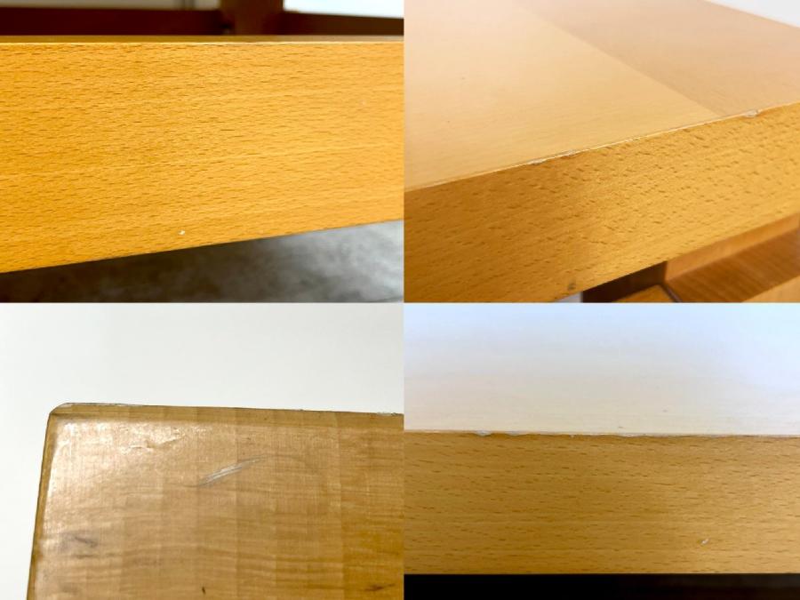 - 目立つ箇所複数あり深い傷・凹みが商品全体にある。(例、天板、幕板、棚板、サイド部分、脚部等にある。)