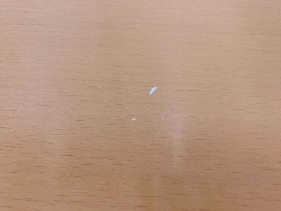 - あり黄ばみ・変色が広い範囲にうっすらある、または濃い黄ばみ・変色が一部ある。(例、天板、幕板、棚板、サイド部分、脚部等にある。)