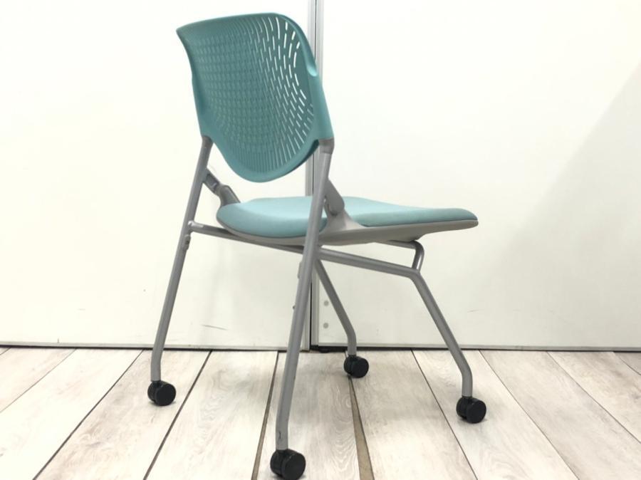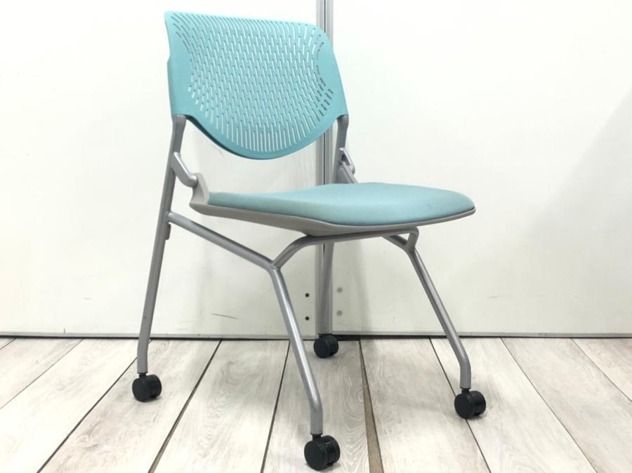 【関東倉庫在庫品】【フレキシブルに使える!使わない時は省スペースで収納可能!】■オカムラ製 ルナ ネスティングチェア ■ライトブルー【弊社使用欄:A01008468】【ECBMC】